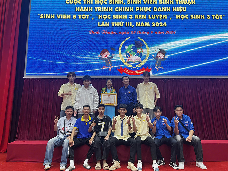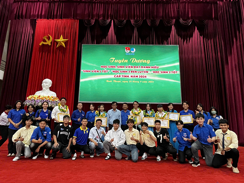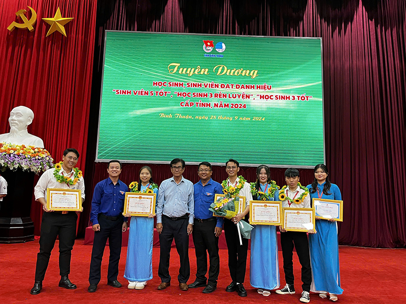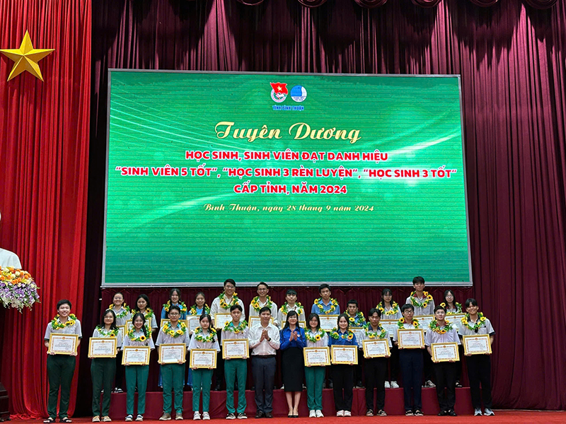Sáng ngày 28/9/2024, tại Trung tâm Hội nghị tỉnh Bình Thuận đã diễn ra Chương trình Tuyên dương Học sinh, sinh viên đạt danh hiệu “Sinh viên 5 tốt”, “Học sinh 3 rèn luyện”, “Học sinh 3 tốt” cấp tỉnh, năm 2024.