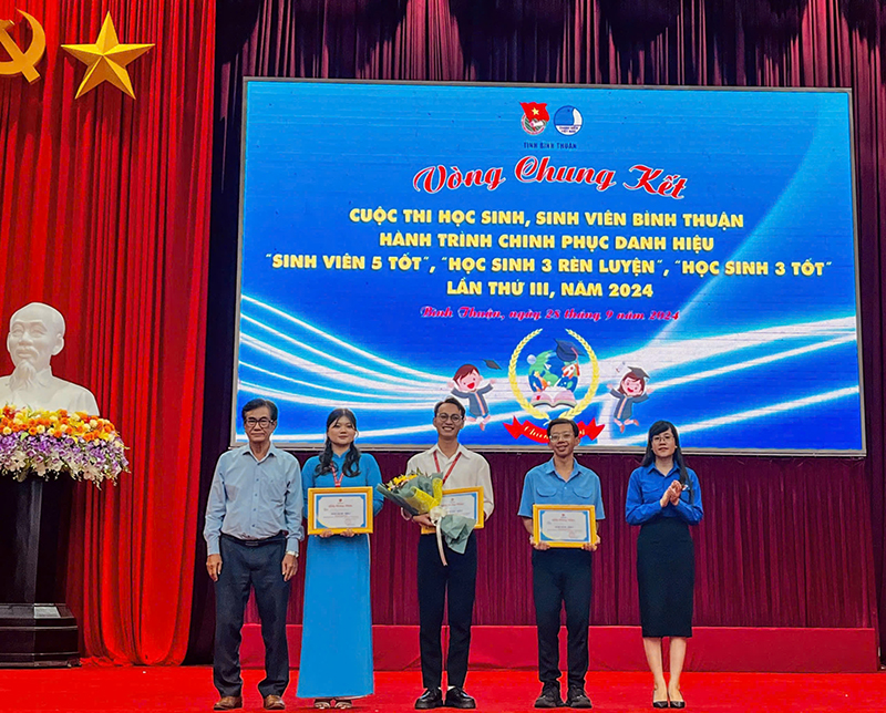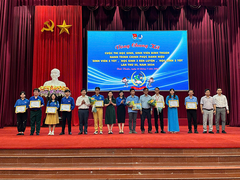 Trong khuôn khổ chương trình Tuyên dương, Ban Thường vụ Tỉnh Đoàn cũng đã tổ chức Vòng chung kết Cuộc thi học sinh, sinh viên Bình Thuận Hành trình chinh phục danh hiệu “Sinh viên 5 tốt”, “Học sinh 3 rèn luyện”, “Học sinh 3 tốt” lần thứ III, năm 2024. Trường Đại học Phan Thiết đã có 02 đại diện xuất sắc đạt giải, trong đó, sinh viên Nguyễn Minh Sơn đạt Giải Nhất và sinh viên Nguyễn Nghi Thường đạt Giải Nhì trong Hành trình chinh phục Danh hiệu Sinh viên 5 tốt cấp tỉnh.