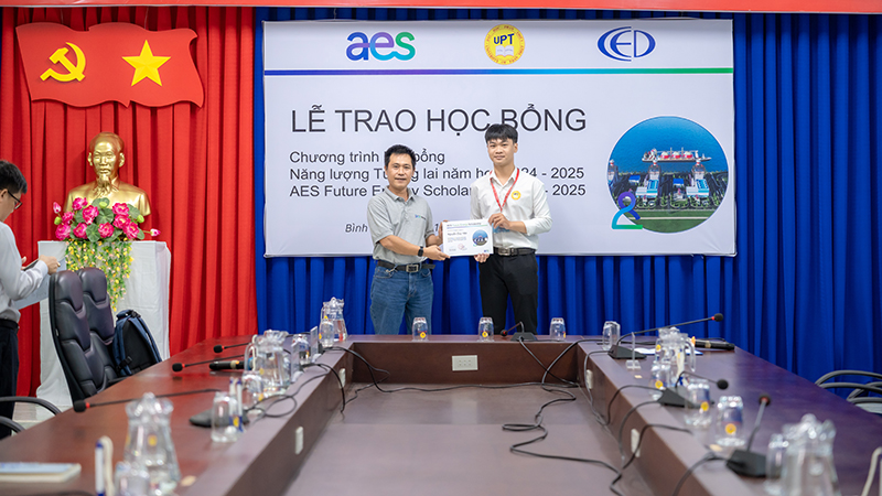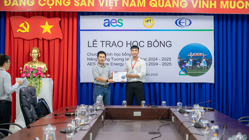 AES Việt Nam và Trung tâm Giáo dục và Phát triển (CED) trao tặng 05 suất Học bổng Năng lượng Tương lai năm 2025 trị giá 14.000.000VNĐ/sinh viên cho 05 sinh viên ngành Kỹ thuật Xây dựng trường Đại học Phan Thiết.