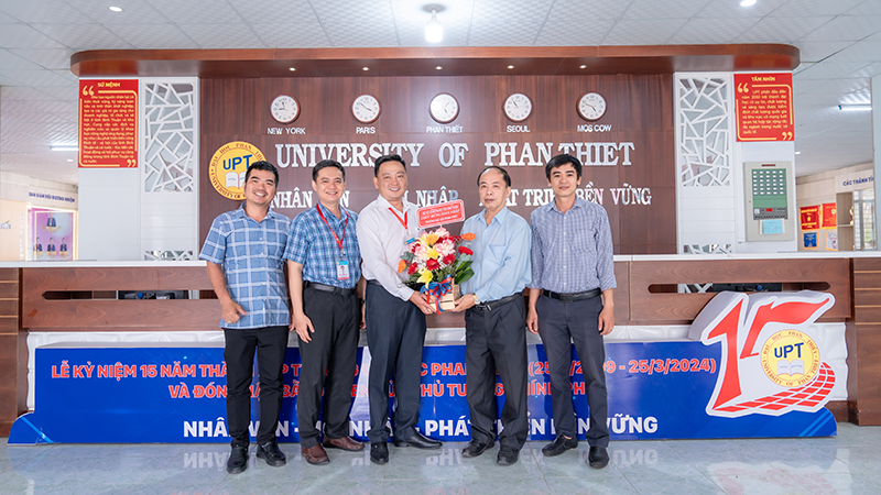 Ngày 25/3/2025, trường Đại học Phan Thiết rất vinh dự và vui mừng được đón tiếp các vị khách quý từ Hiệp hội doanh nghiệp tỉnh Bình Thuận và Nam A Bank Bình Thuận đến thăm hỏi và tặng hoa cho Nhà trường nhân dịp kỷ niệm 16 năm ngày thành lập trường Đại học Phan Thiết (25/3/2009 – 25/3/2025).