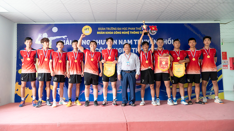 Lễ trao giải diễn ra trong không khí hân hoan, phấn khởi của tập thể cán bộ, giảng viên, sinh viên trường Đại học Phan Thiết. Phát biểu tại chương trình, PGS.TS.NGƯT. Võ Khắc Thường – Chủ tịch Hội đồng trường – Hiệu trưởng trường Đại học Phan Thiết dành lời chúc mừng và đánh giá cao những thành tích mà Ban tổ chức và các cầu thủ đã đạt được trong giải bóng chuyền nam truyền thống Khoa Công nghệ Thông tin năm nay. PGS.TS.NGƯT. Võ Khắc Thường ghi nhận những nỗ lực không ngừng của tập thể Khoa Công nghệ Thông tin trong việc tổ chức một hoạt động thể thao lành mạnh không chỉ giúp sinh viên thư giãn sau những giờ học căng thẳng mà còn tạo ra cơ hội giao lưu, kết nối, tăng cường tinh thần đoàn kết giữa tập thể sinh viên trong toàn trường. Thầy hy vọng, giải bóng chuyền Khoa Công nghệ Thông tin sẽ ngày càng được mở rộng và phát triển hơn nữa, đồng thời, các Khoa chuyên môn còn lại cũng sẽ tổ chức thêm nhiều hoạt động sáng tạo, bổ ích khác, góp phần vào việc xây dựng môi trường học tập UPT hiện đại, năng động và tích cực.