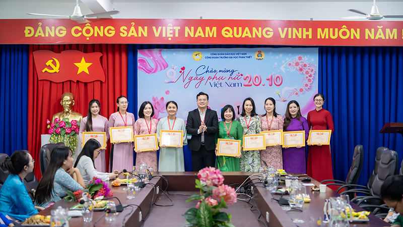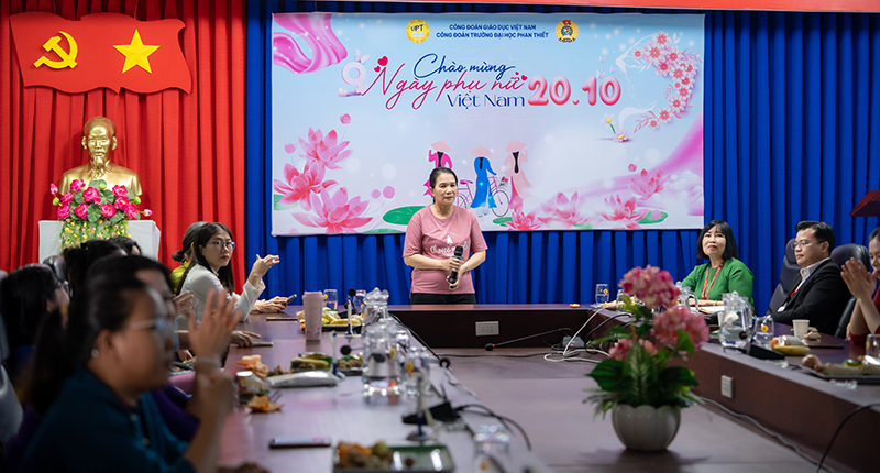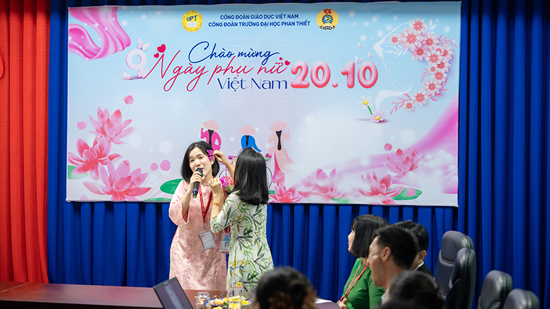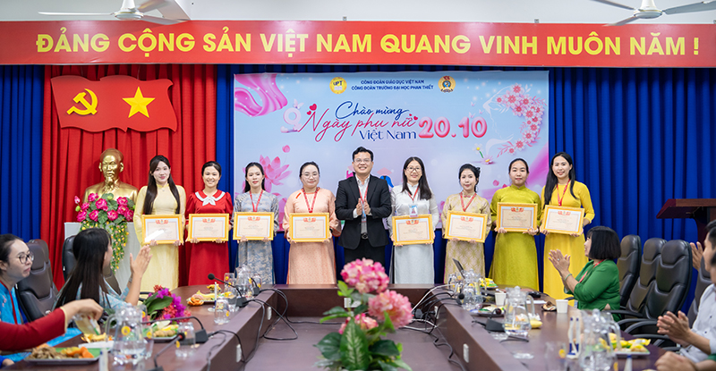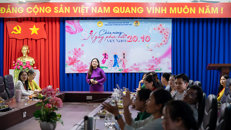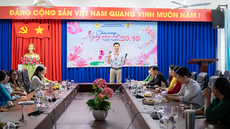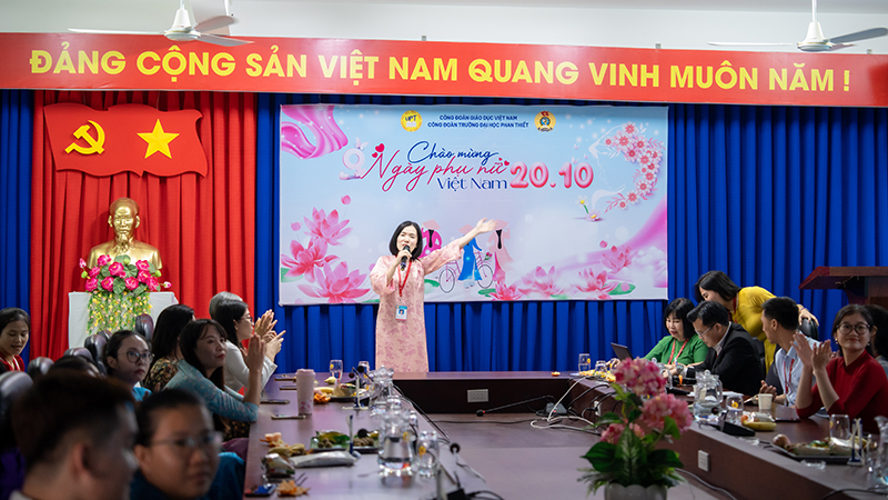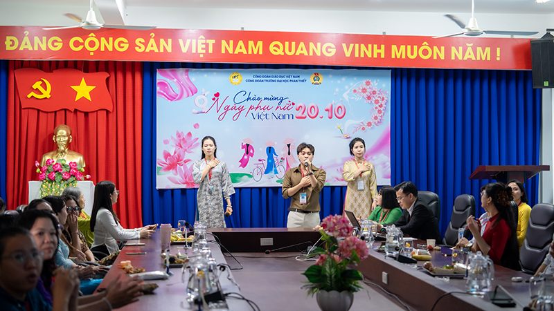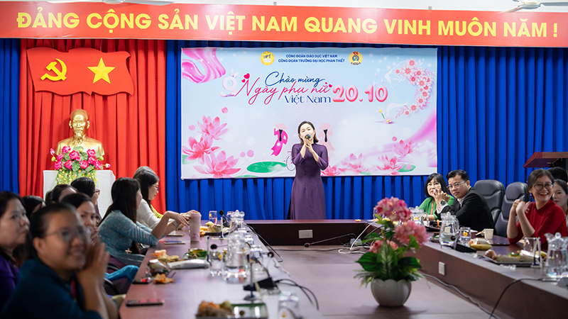 Hòa trong không khí vui tươi, phấn khởi chào mừng Ngày Phụ nữ Việt Nam 20/10, sáng ngày 20/10/2025, Công đoàn Trường Đại học Phan Thiết đã long trọng tổ chức Cuộc thi hát karaoke – nơi thể hiện tài năng và tình yêu nghệ thuật của cán bộ, giảng viên, nhân viên nhà trường. Đây không chỉ là sân chơi văn nghệ sôi nổi, mà còn là dịp để toàn thể cán bộ, giảng viên, nhân viên Nhà trường cùng nhìn lại chặng đường hoạt động phong trào trong năm học 2024–2025 thông qua chương trình Tổng kết phong trào “Giỏi việc trường – Đảm việc nhà” – một phong trào thi đua đầy ý nghĩa đã trở thành truyền thống tốt đẹp qua nhiều năm, góp phần động viên nữ cán bộ, giảng viên phấn đấu hoàn thành tốt công tác chuyên môn, đồng thời vun vén hạnh phúc gia đình.