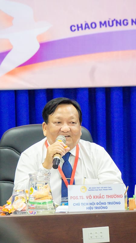 Meritorious teacher, Associate Professor, Dr. Vo Khac Thuong – Chairman of the School Council – Principal of Phan Thiet University spoke at the program