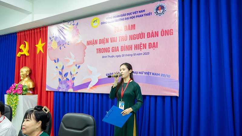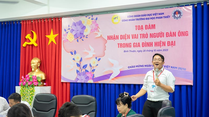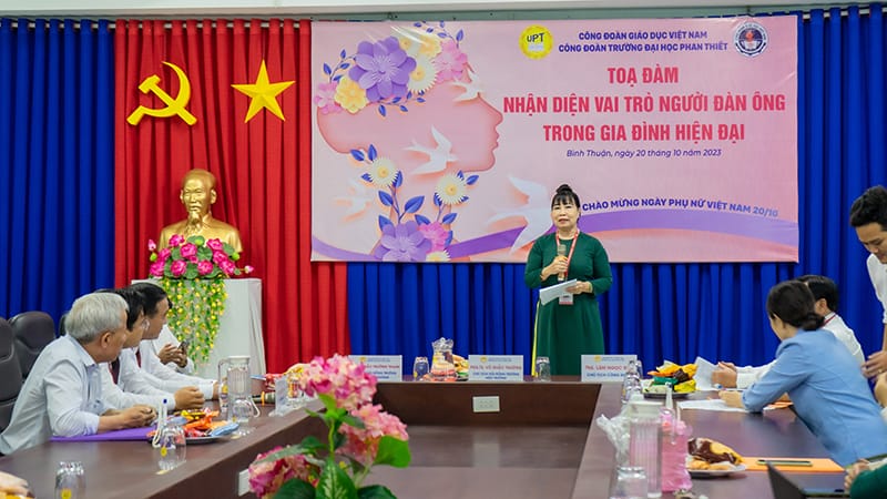 Celebrating the 93rd anniversary of the founding of the Vietnam Women’s Union (October 20, 1930 – October 20, 2023), 13 years of Vietnamese Women’s Day (October 20, 2010 – October 20, 2023), Phan Thiet University’s Trade Union jubilantly organized a discussion program with thematic topics “Identifying the role of men in modern families” and Summary of the movement “Good at school work – Good at housework” for the 2022-2023 school year.