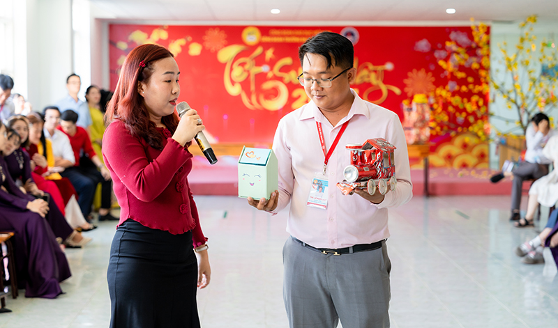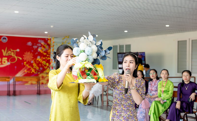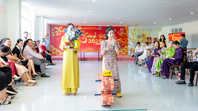 Phát biểu khai mạc chương trình, ThS. Lâm Ngọc Điệp – Chủ tịch Công đoàn trường Đại học Phan Thiết nhấn mạnh tầm quan trọng của việc tổ chức các hoạt động thiết thực và ý nghĩa, đem đến cho tập thể đoàn viên công đoàn một cái tết trọn vẹn, đủ đầy và nhiều niềm vui. Đại diện Ban Chấp hành Công đoàn, ThS. Lâm Ngọc Điệp dành lời cảm ơn và tri ân sâu sắc đến Hội Đồng trường, Đảng bộ, Ban Giám hiệu đã luôn quan tâm, chỉ đạo và hỗ trợ cho mọi hoạt động của Công Đoàn trường. Nhân dịp năm mới 2025, Cô cũng dành những lời chúc mừng năm mới tốt đẹp nhất đến tập thể cán bộ, giảng viên, nhân viên trong Nhà trường.