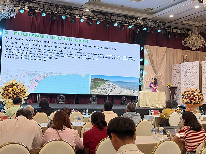 TS. La Nữ Ánh Vân – Phó Trưởng Khoa Du lịch Trường Đại học Phan Thiết chia sẻ tại Hội nghị
