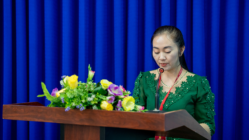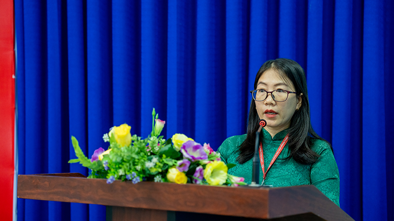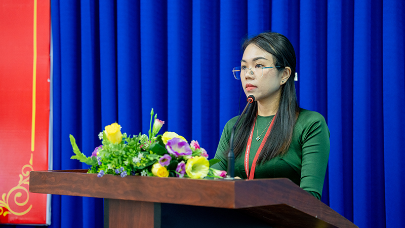 Đồng chí Nguyễn Thị Kiều Vi – Phó Bí thư Chi bộ 1 khóa I, Nhiệm kỳ 2024-2025 trình bày báo cáo tổng kết công tác Nhiệm kỳ 2024-2025