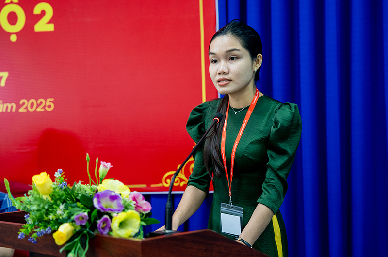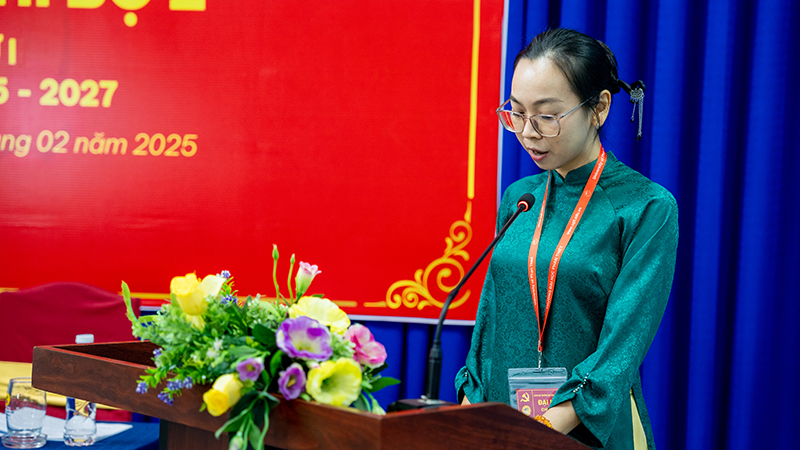 Đồng chí Võ Mỹ Duyên – Chi ủy viên Chi bộ 2 khóa I, Nhiệm kỳ 2024-2025 trình bày báo cáo kiểm điểm của Chi ủy khóa I, Nhiệm kỳ 2024-2025