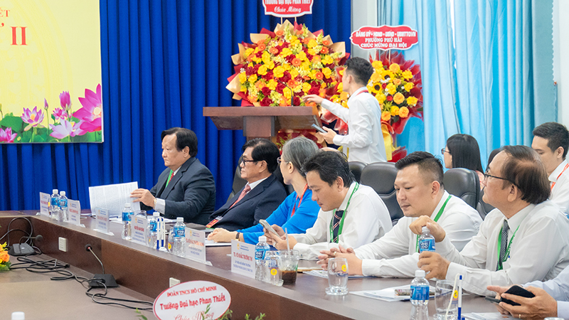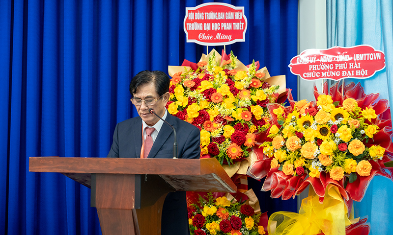 Đại diện Lãnh đạo nhà trường, PGS.TS. Võ Khắc Thường – Chủ tịch Hội đồng trường, Hiệu trưởng Trường Đại học Phan Thiết đã có những chia sẻ thẳng thắn, cởi mở về những thành công của Đảng bộ nhà trường trong thời gian qua. Thầy bày tỏ hy vọng trong thời gian tới, các cấp lãnh đạo địa phương sẽ dành sự quan tâm, hỗ trợ các mặt công tác của Trường Đại học Phan Thiết để tận dụng tối đa các nguồn lực, đưa nhà trường ngày càng phát triển, đáp ứng yêu cầu ngày càng cao của sự nghiệp giáo dục.
