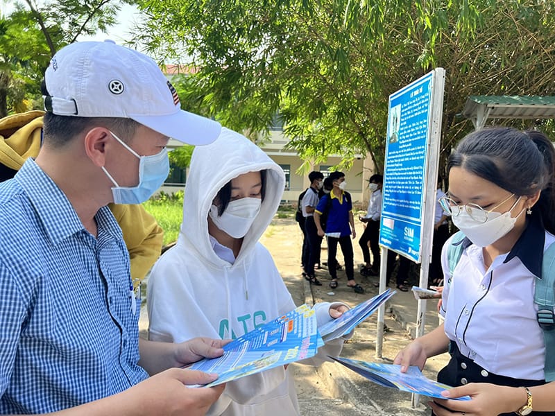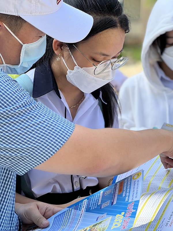 Với mục tiêu đem đến cho các thí sinh tỉnh nhà những thông tin quan trọng và cần thiết nhất, giúp các em tăng cao cơ hội trúng tuyển Đại học vào các chuyên ngành tiềm năng của xã hội, cũng như nhận được những chính sách học phí, học bổng ưu đãi dành cho tân sinh viên, Đoàn tuyển sinh UPT đã tích cực gửi đến các em brochures có chứa đầy đủ thông tin tuyển sinh năm 2022 của Nhà trường. Đồng thời, Đoàn đã nhanh chóng giải đáp tại chỗ mọi thắc mắc và có những hướng dẫn cụ thể cho phụ huynh, học sinh về các phương thức và thủ tục xét tuyển vào trường Đại học Phan Thiết dựa theo kết quả kỳ thi tốt nghiệp THPT năm 2022, học bạ THPT và kỳ thi đánh giá năng lực do Đại học Quốc Gia Thành phố Hồ Chí Minh tổ chức.