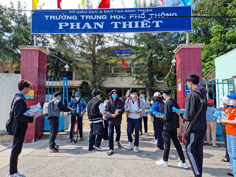 Chiều 06/7/2022, gần 12.800 thí sinh tham dự kỳ thi tốt nghiệp THPT 2022 trên địa bàn tỉnh Bình Thuận đã có mặt tại các điểm thi để làm thủ tục dự thi, nghe phổ biến Quy chế thi và lịch thi. Đồng hành cùng tất cả các sĩ tử trong ngày làm thủ tục là Đoàn tuyển sinh trường Đại học Phan Thiết (UPT). Tại các điểm trường, Đoàn đã thực hiện công tác tiếp sức mùa thi, đặc biệt, tư vấn tuyển sinh, hướng nghiệp tại chỗ cho thí sinh và phụ huynh.