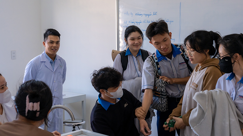 Tại buổi gặp mặt, đoàn trường THPT Lương Thế Vinh đã được hướng dẫn tham quan toàn bộ khuôn viên trường Đại học Phan Thiết, khu giảng đường, các phòng học, phòng chức năng, phòng thực hành và khu thể dục thể thao… Qua đó, các em học sinh đã có dịp khám phá hệ thống cơ sở vật chất hiện đại của Nhà trường, chứng kiến cách thức học tập và sinh hoạt thực tế của sinh viên, từ đó có thể hình dung rõ hơn về môi trường học tập đại học, cũng như mở rộng tầm nhìn về các ngành nghề, tìm được định hướng học tập và phát triển sự nghiệp trong tương lai.