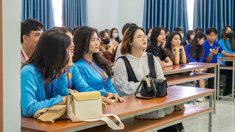 Dr. Tran Thi Quynh Le – Deputy Head of the Faculty of Foreign Languages congratulated the new students who successfully passed the high school graduation exam and were admitted to Phan Thiet University. At the meeting, the Deputy Dean introduced to the students the overview of the training program, output standards, learning methods, as well as job opportunities of each major in the English Language major. . Dr. Tran Thi Quynh Le believes that, with their best efforts, striving spirit, and eagerness to learn, students will certainly cultivate a lot of knowledge and skills during their studies at UPT.