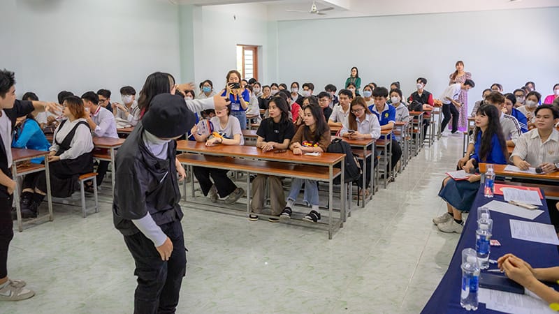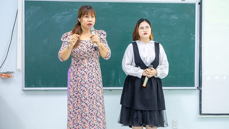 After the speech of Dr. Tran Thi Quynh Le and the faculty came with a series of unique musical performances and fun games prepared by the students in the Faculty. Through this, the children had the opportunity to interact, meet, connect with friends and strengthen the spirit of solidarity. In addition, outstanding role models in the process of studying and training at the Faculty of Foreign Languages were also introduced to new students of course 15, becoming a source of inspiration and motivation to help them firmly believe in their journey to conquer knowledge. knowledge and self-development in the future.