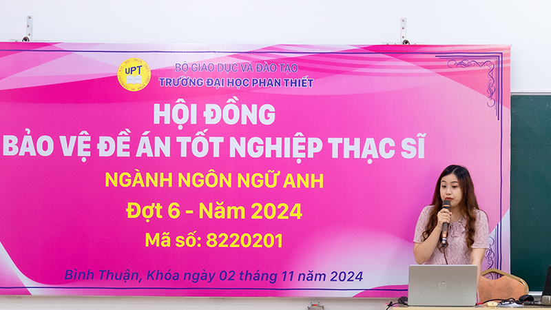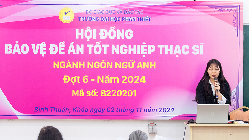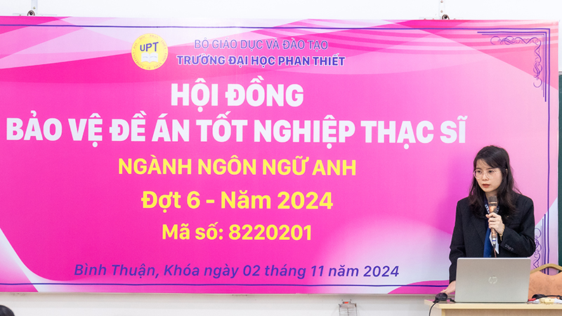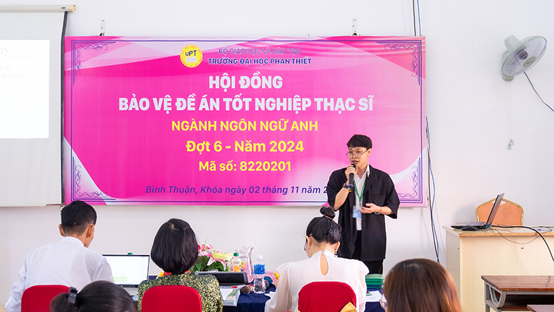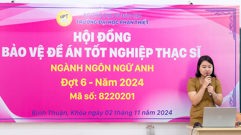 Chiều 02/11/2024, trường Đại học Phan Thiết đã tổ chức Hội đồng bảo vệ Đề án tốt nghiệp Thạc sĩ cho 9 học viên Cao học ngành Ngôn ngữ Anh Khóa 2.2.
