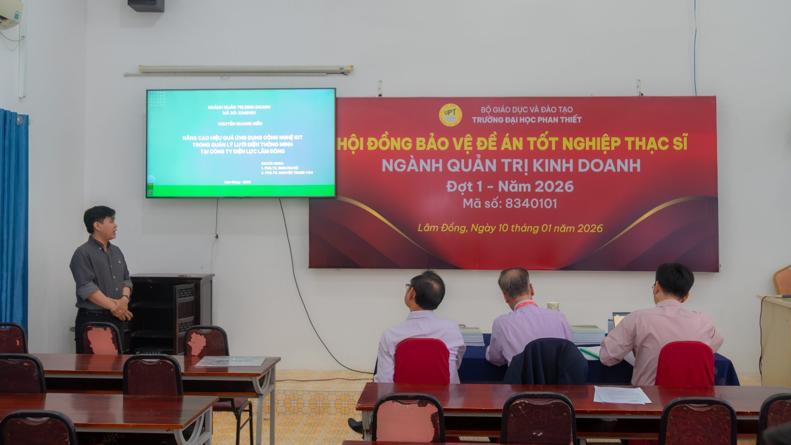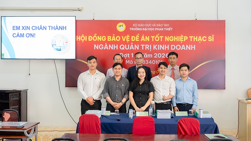 Buổi bảo vệ đề án tốt nghiệp thạc sĩ ngành Quản trị Kinh doanh – Đợt 1 năm 2026 đã diễn ra đúng kế hoạch và đạt được mục tiêu đề ra. Đây là bước đánh giá quan trọng, ghi nhận kết quả học tập, nghiên cứu của học viên cao học, đồng thời khẳng định uy tín và chất lượng đào tạo sau đại học của Trường Đại học Phan Thiết.