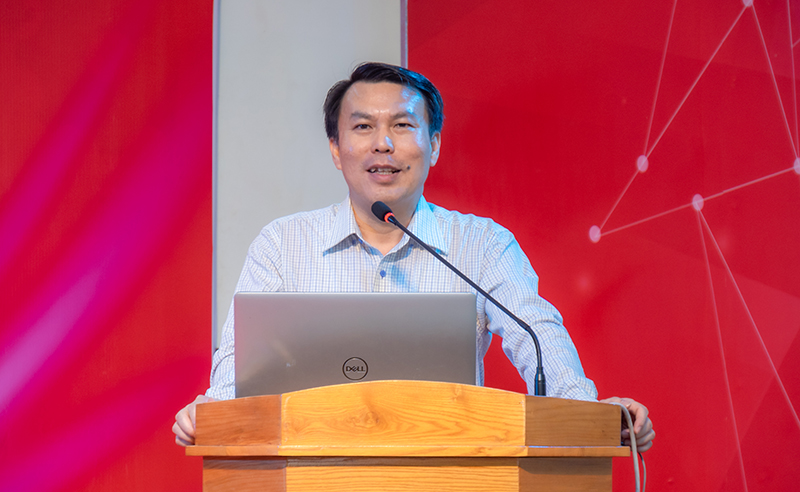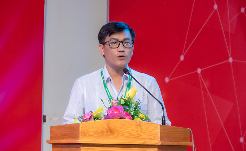 TS. Đặng Tấn Tín – Trưởng Khoa Ngoại ngữ trường Đại học Sư phạm Kỹ thuật TP. Hồ Chí Minh trình bày báo cáo tham luận với chủ đề “Nâng cao năng lực tự học trong giáo dục đại học”
