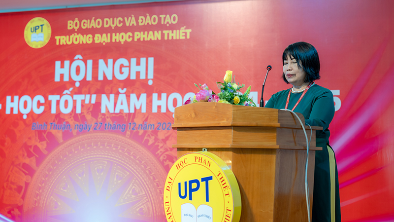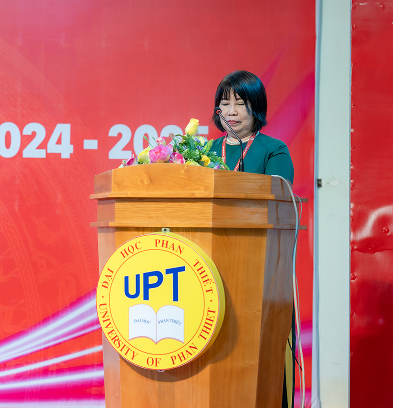 Tiếp theo chương trình, ThS. Lâm Ngọc Điệp – Chủ tịch Công đoàn trường Đại học Phan Thiết đã trình bày báo cáo tổng kết thực hiện phong trào thi đua “Dạy tốt” năm học 2023–2024. Theo nội dung báo cáo, trong năm qua, trường Đại học Phan Thiết đã tổ chức hiệu quả cho tập thể CBGVNV học tập, thực hiện nghiêm túc các Chỉ thị, Nghị quyết của Đảng, chính sách pháp luật của Nhà nước, các văn bản của ngành; phát động “Học tập và làm theo tấm gương đạo đức Hồ Chí Minh”. Ngoài ra, tập thể UPT cũng đã đạt được nhiều kết quả đáng ghi nhận ở mọi phương diện giảng dạy, nghiên cứu khoa học, phục vụ cộng đồng, bồi dưỡng trình độ…