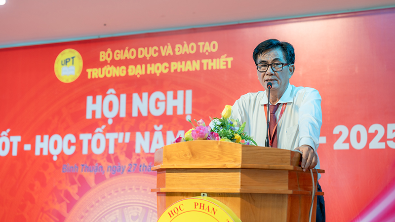 Phát biểu khai mạc Hội nghị, PGS.TS. Đinh Phi Hổ – Bí Thư Đảng ủy – Phó Hiệu trưởng trường Đại học Phan Thiết nhấn mạnh tầm quan trọng của việc đổi mới, sáng tạo trong công tác giảng dạy, học tập, đảm bảo phù hợp với tiến trình phát triển của nền kinh tế số toàn cầu, đáp ứng nhu cầu nhân lực chất lượng cao của xã hội hiện đại. Với tinh thần đoàn kết, phát huy những thành tựu đã đạt được, cải tiến những mặt còn hạn chế, PGS.TS.NGƯT. Võ Khắc Thường tin tưởng, tập thể Thầy trò trường Đại học Phan Thiết sẽ có thể gặt hái thêm nhiều thành công trên bước đường thực hiện nhiệm vụ giáo dục, đào tạo năm học 2024–2025.