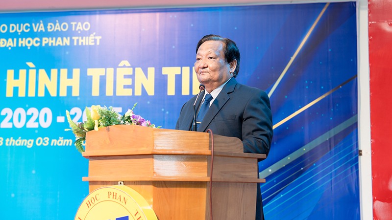 PGS.TS.NGƯT. Võ Khắc Thường – Chủ tịch Hội đồng trường – Hiệu trưởng trường Đại học Phan Thiết phát biểu khai mạc