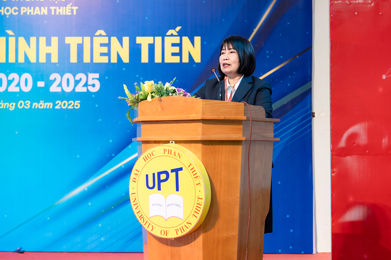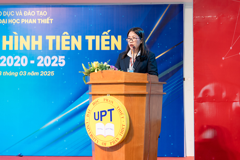 ThS. Nguyễn Thị Minh Nga – Phó Trưởng phòng Quản lý Đào tào trường Đại học Phan Thiết trình bày tham luận tại hội nghị