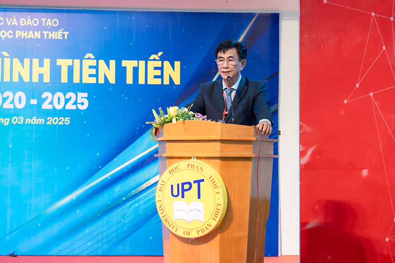 PGS.TS.NGƯT. Võ Khắc Thường – Chủ tịch Hội đồng trường – Hiệu trưởng trường Đại học Phan Thiết, phát biểu khai mạc hội nghị, nhấn mạnh: “Hội nghị nhằm tổng kết đánh giá toàn diện, sâu sắc kết quả thực hiện phong trào thi đua yêu nước và kết quả thi đua khen thưởng giai đoạn 2020–2025, là ngày hội tôn vinh những tấm gương tập thể và cá nhân điển hình tiên tiến của trường đã được lựa chọn từ các đơn vị vào thời gian qua. Đây là dấu mốc quan trọng khẳng định bước phát triển mới của phong trào thi đua và công tác khen thưởng; thể hiện sự tiếp nối, phát huy những truyền thống tốt đẹp và những thành tích, kết quả đã đạt được của Nhà trường trong những năm qua. Bên cạnh đó, những thành tích mà Nhà trường đạt được cũng là điểm sáng hướng đến chào mừng lễ kỷ niệm 16 năm thành lập trường (25/3/2009 – 25/3/2025).