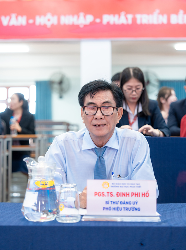 PGS.TS. Đinh Phi Hổ – Bí thư Đảng ủy – Phó Hiệu trưởng trường Đại học Phan Thiết trình bày tham luận tại hội nghị