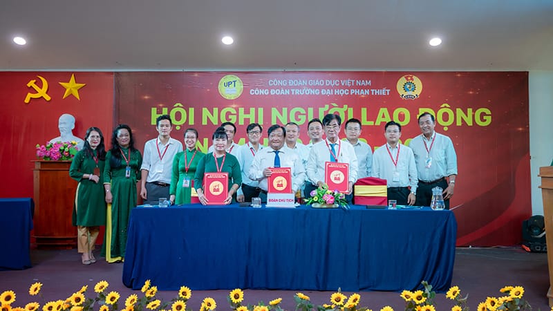 Chương trình Hội nghị người lao động 2023-2024 diễn ra trong không khí trang trọng với sự trao đổi thẳng thắn của tất cả mọi thành viên trong Nhà trường. Phần lễ ký kết giao ước thi đua năm học 2023-2024 giữa Nhà trường, Chi bộ và Công đoàn trường được tiến hành công khai trước sự chứng kiến của tập thể UPT có mặt tại chương trình.