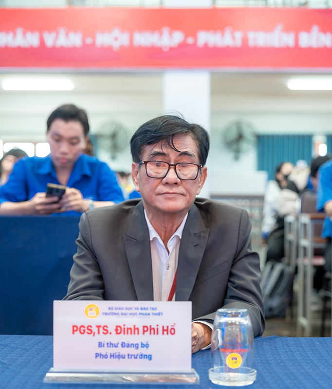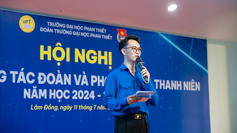 PGS.TS. Đinh Phi Hổ – Phó hiệu trưởng Trường Đại học Phan Thiết đã có phần phát biểu về ý nghĩa của Hội nghị Tổng kết công tác Đoàn – Hội và phong trào thanh niên năm học 2024 – 2025. Đồng thời, đánh giá kết quả công tác xây dựng phong trào Đoàn – Hội và phong trào thanh niên tại trường Đại học Phan Thiết trong thời gian qua. PGS.TS. Đinh Phi Hổ cho biết, công tác Đoàn – Hội và phong trào thanh niên tại Trường Đại học Phan Thiết không chỉ là nhiệm vụ vô cùng quan trọng mà còn giúp thanh niên rèn luyện kỹ năng, mở rộng kiến thức, và phát triển bản thân, đồng thời đóng góp tích cực vào sự phát triển kinh tế – xã hội, bảo vệ Tổ quốc và xây dựng cộng đồng.