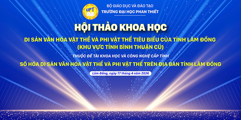 Sáng ngày 17/4/2026, Trường Đại học Phan Thiết chủ trì tổ chức Hội thảo khoa học “Di sản văn hóa vật thể và phi vật thể tiêu biểu của tỉnh Lâm Đồng (khu vực tỉnh Bình Thuận cũ)”. Hội thảo thuộc Nội dung 2, là 01 trong 08 nội dung của đề tài khoa học và công nghệ cấp tỉnh “Số hóa di sản văn hóa vật thể và phi vật thể trên địa bàn tỉnh Lâm Đồng” do Trường Đại học Phan Thiết là đơn vị chủ trì, được phê duyệt triển khai từ tháng 01/2026 đến tháng 12/2027 theo Quyết định số 314/QĐ-SKHCN ngày 09/12/2025 của Sở Khoa học và Công nghệ tỉnh Lâm Đồng.