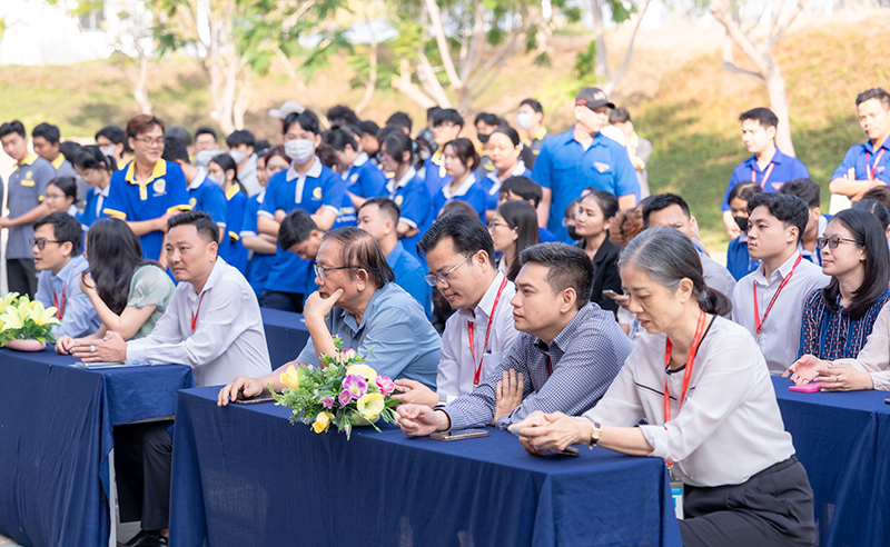 Tham dự chương trình có sự hiện diện của TS. Võ Khắc Trường Thanh – Ủy viên Hội đồng trường – Phó Hiệu trưởng Nhà trường; Cô Nguyễn Anh Đông – Ủy viên Hội đồng trường – Phó Bí thư Đảng ủy – Trưởng phòng Kế hoạch – Tài chính; ThS. Lê Anh Linh – Trưởng phòng Tổ chức – Hành chính; ThS. Nguyễn Như Trường – Trưởng Phòng Công tác chính trị sinh viên & Hợp tác doanh nghiệp; cùng đại diện lãnh đạo, cán bộ, giảng viên đến từ các đơn vị Khoa, Phòng, Ban chuyên môn trong toàn trường.