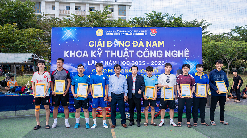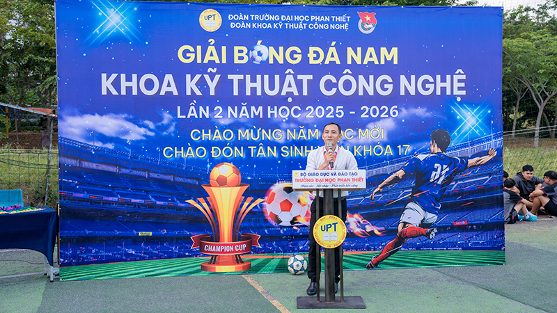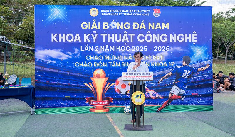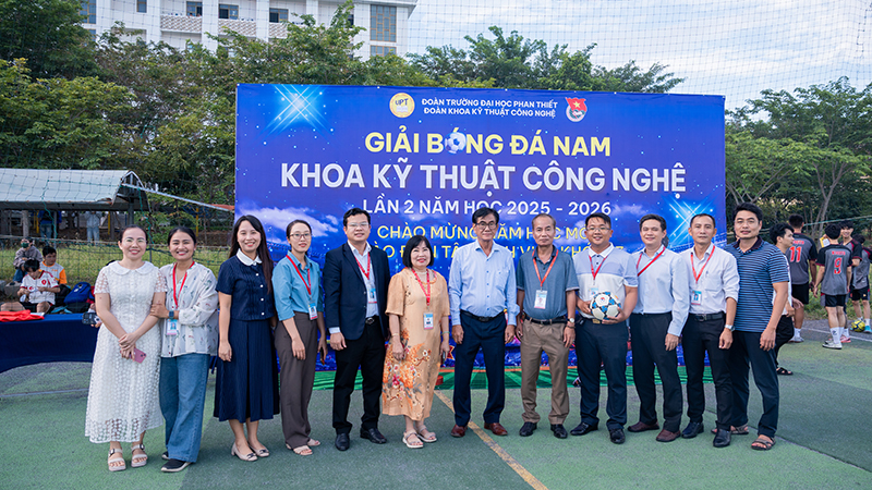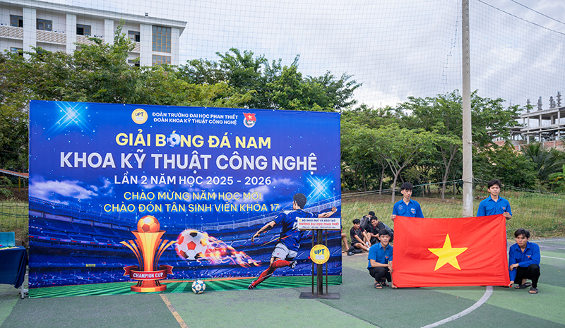 🌟 Chiều ngày 09/10/2025, tại sân bóng đá Trường Đại học Phan Thiết, đã diễn ra Lễ khai mạc Giải bóng đá Nam Khoa Kỹ thuật – Công nghệ lần II, năm học 2025–2026. Giải đấu do Đoàn Trường phối hợp với Đoàn Khoa Kỹ thuật – Công nghệ tổ chức nhằm chào đón năm học mới 2025 – 2026, đẩy mạnh các hoạt động thể thao sinh viên, tạo sân chơi lành mạnh, nâng cao sức khỏe, tăng cường tinh thần đoàn kết, giao lưu và học hỏi giữa sinh viên các khóa. Đồng thời tuyển chọn các tuyển thủ xuất sắc thành lập đội bóng đá tham gia các giải đấu bóng đá toàn trường và trong khu vực.