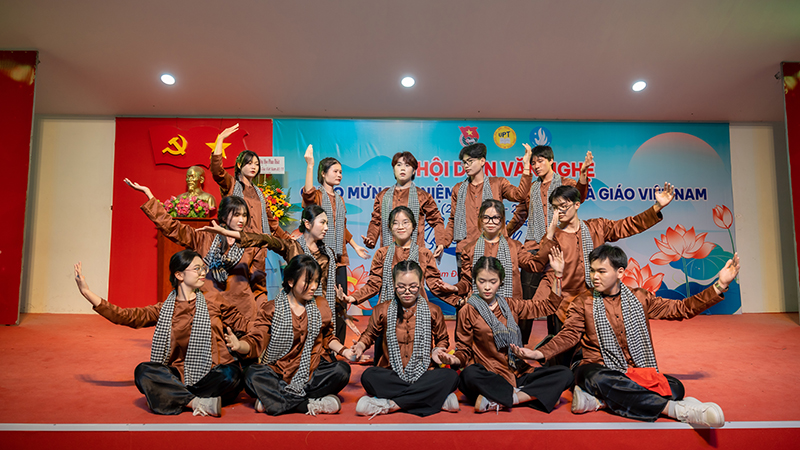 Chương trình “Khúc hát tri ân” năm 2025 quy tụ 14 tiết mục văn nghệ đặc sắc, được biểu diễn bởi tập thể sinh viên đến từ các Khoa chuyên môn trong Nhà trường. Theo đánh giá của Ban Giám khảo, các tiết mục năm nay được đầu tư kỹ lưỡng về mặt hình thức lẫn nội dung, có sự dàn dựng công phu với đa dạng thể loại. Sự kết hợp đặc sắc giữa âm thanh, đạo cụ, trang phục cùng phong cách trình diễn vô cùng tự tin của các em sinh viên đã mang đến chương trình một không khí tưng bừng và sôi nổi hơn bao giờ hết.