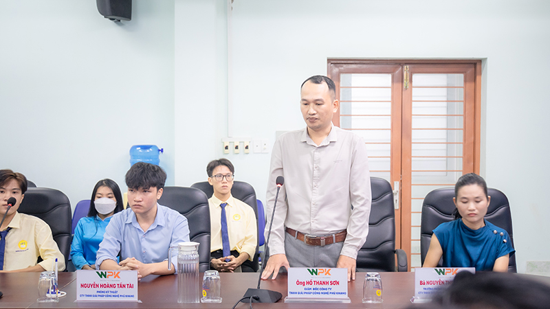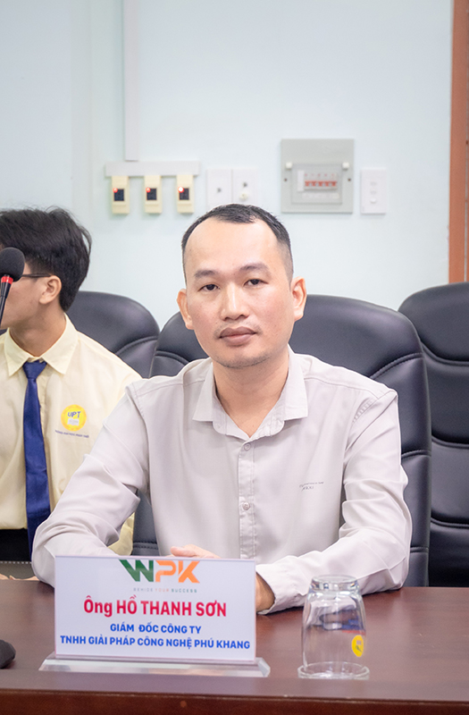 Ông Hồ Thanh Sơn – Giám đốc Công ty TNHH Giải pháp công nghệ Phú Khang cũng đã có phần phát biểu hết sức chân thành, cam kết sẽ đồng hành và hỗ trợ tối đa cho sinh viên trường Đại học Phan Thiết trong quá trình học tập, thực tập và tìm kiếm việc làm.