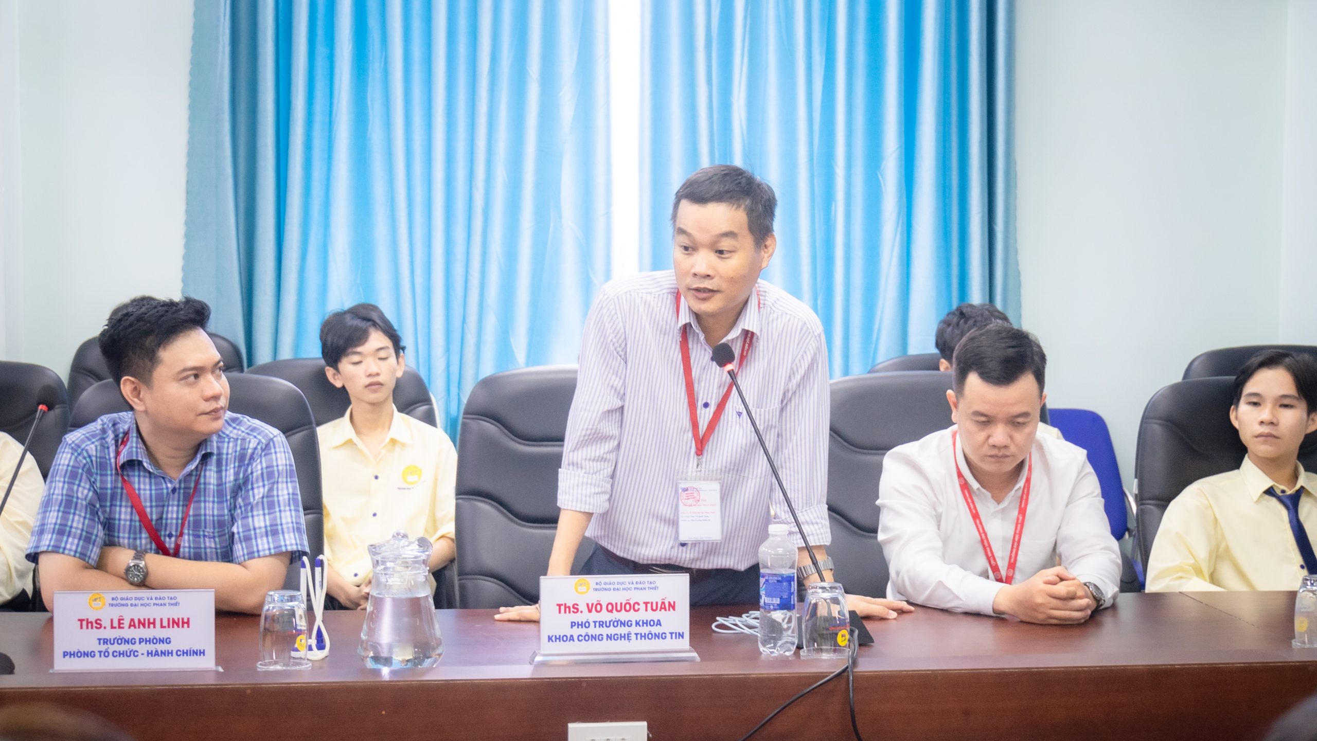 Tiếp lời PGS.TS. Đinh Phi Hổ, ThS. Võ Quốc Tuấn – Phó Trưởng Khoa Công nghệ Thông tin trường Đại học Phan Thiết đã có phần giới thiệu sơ lược về Khoa Công nghệ Thông tin và những thành tựu nổi bật mà Khoa đã đạt được trong thời gian qua. Phó Trưởng Khoa tin tưởng với chương trình đào tạo hiện đại cùng đội ngũ giảng viên giàu kinh nghiệm, sinh viên Khoa Công nghệ Thông tin tốt nghiệp ra trường có thể hội tụ đầy đủ năng lực chuyên môn, phục vụ hiệu quả cho nhu cầu ngày càng cao của thị trường lao động.