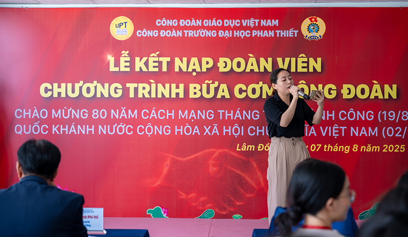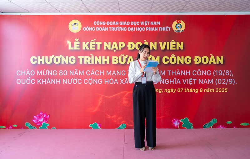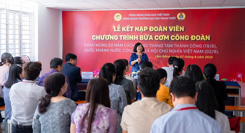 Hòa trong không khí thi đua sôi nổi chào mừng kỷ niệm 96 năm Ngày thành lập Công đoàn Việt Nam (28/7/1929 – 28/7/2025), 74 năm Ngày thành lập Công đoàn Giáo dục Việt Nam (22/7/1951 – 22/7/2025) và hướng tới kỷ niệm 80 năm Cách mạng Tháng Tám thành công cùng Quốc khánh 02/9, sáng ngày 07/8/2025, tại sảnh tầng 1 khu giảng đường, Công đoàn Trường Đại học Phan Thiết đã long trọng tổ chức Lễ kết nạp đoàn viên mới và “Bữa cơm Công đoàn” năm 2025.
