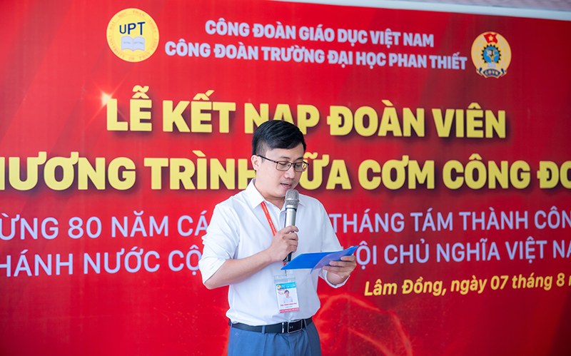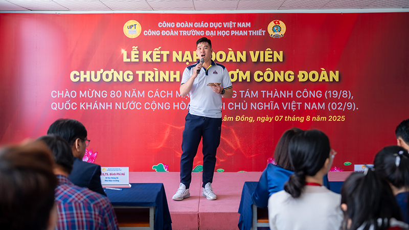 Phát biểu khai mạc chương trình, ThS. Lâm Ngọc Điệp – Chủ tịch Công đoàn Trường Đại học Phan Thiết – đã nhấn mạnh ý nghĩa của các hoạt động thiết thực trong dịp lễ kỷ niệm, thể hiện tinh thần đoàn kết, sẻ chia, đồng thời ghi nhận những nỗ lực đóng góp của từng cán bộ, giảng viên, nhân viên Nhà trường.