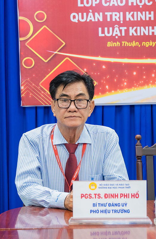 PGS.TS. Đinh Phi Hổ – Bí thư Đảng bộ – Phó Hiệu trưởng trường Đại học Phan Thiết gửi lời chúc mừng nồng nhiệt đến tất cả các học viên Cao học trúng tuyển trong đợt này. PGS.TS. Đinh Phi Hổ đã chia sẻ những lời động viên chân thành, đồng thời truyền đạt nhiều kinh nghiệm quý báu về học tập và nghiên cứu đến các học viên. Phó Hiệu trưởng bày tỏ niềm tin với tinh thần cầu tiến và thái độ học hỏi nghiêm túc, các anh chị học viên sẽ không ngừng hoàn thiện bản thân, nâng cao trình độ và đạt được nhiều thành công trong sự nghiệp tương lai.