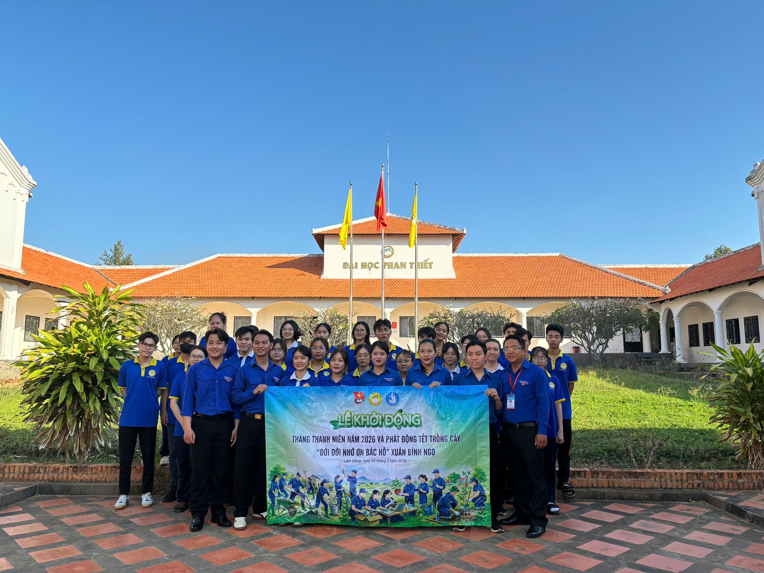 Sáng ngày 05/3/2026, Đoàn Thanh niên Trường Đại học Phan Thiết đã long trọng tổ chức Lễ khởi động Tháng Thanh niên năm 2026 và phát động Tết trồng cây “Đời đời nhớ ơn Bác Hồ” Xuân Bính Ngọ. Chương trình diễn ra trong không khí trang trọng, sôi nổi với sự tham gia đông đảo của cán bộ, đoàn viên, sinh viên nhà trường, mở đầu cho chuỗi hoạt động tình nguyện thiết thực của tuổi trẻ trong tháng Ba.