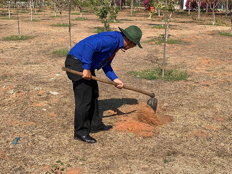 Immediately after the ceremony, hundreds of Youth Union members and students enthusiastically participated in volunteer activities such as cleaning the beach, improving the campus environment, and planting trees. At Da Ong Dia beach, volunteers wearing the symbolic blue shirts of youth volunteers actively collected waste and cleaned the shoreline, helping restore the natural beauty of one of the region’s well-known tourist destinations while spreading the message of protecting the marine environment to local residents and visitors. At the same time, another group of volunteers conducted a general clean-up around the university campus, removing weeds, sweeping walkways, and collecting waste to further enhance a green, clean, and pleasant learning environment.