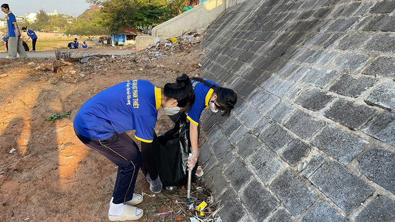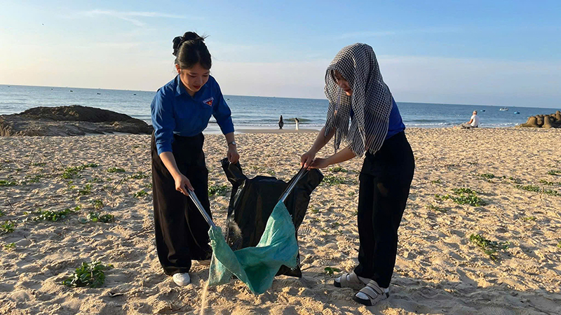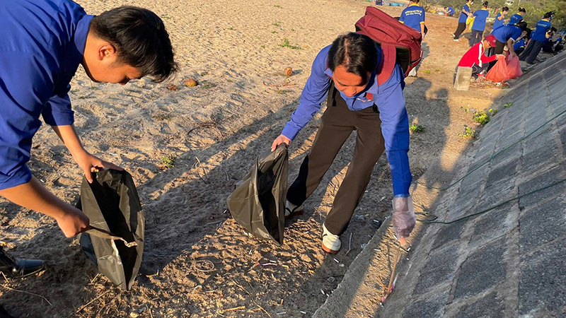 Ngay sau lễ phát động, hàng trăm đoàn viên, thanh niên đã hăng hái ra quân thực hiện các hoạt động tình nguyện ý nghĩa như làm sạch bãi biển, chỉnh trang khuôn viên trường và trồng cây xanh. Tại khu vực Bãi biển Đá Ông Địa, các bạn đoàn viên, sinh viên trong màu áo xanh tình nguyện đã tích cực thu gom rác thải, dọn dẹp vệ sinh dọc bờ biển, góp phần trả lại cảnh quan sạch đẹp cho một điểm du lịch nổi tiếng của địa phương, đồng thời lan tỏa thông điệp bảo vệ môi trường biển đến người dân và du khách. Bên cạnh đó, một lực lượng đoàn viên khác đã tiến hành tổng vệ sinh, nhổ cỏ, quét dọn và thu gom rác thải trong khuôn viên trường, góp phần xây dựng môi trường học đường xanh – sạch – đẹp.