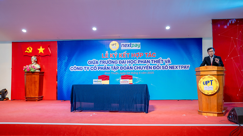 Được sự đồng ý của lãnh đạo 2 đơn vị, Sau thời gian bàn bạc thống nhất các nội dung hợp tác hỗ trợ sinh viên Đại học Phan Thiết về thực tập, kiến tập, hỗ trợ việc làm sinh viên. Sáng ngày 04/04/2025, tại Hội trường trường Đại học Phan Thiết đã long trọng diễn ra Lễ ký kết Thỏa thuận hợp tác giữa trường Đại học Phan Thiết và Công ty Cổ phần Tập đoàn chuyển đổi số Nextpay.
