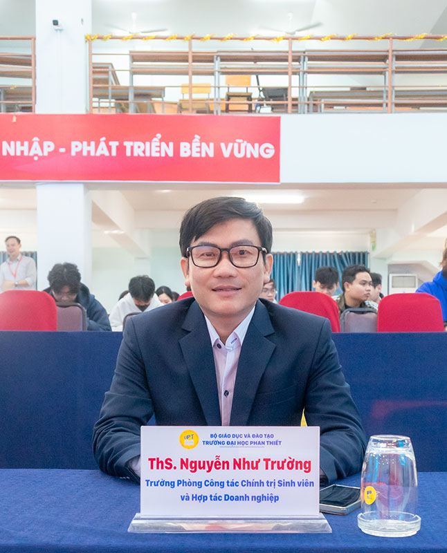 ThS. Nguyễn Như Trường – Trưởng Phòng Công tác Chính trị Sinh viên và Hợp tác Doanh nghiệp Trường Đại học Phan Thiết phát biểu
