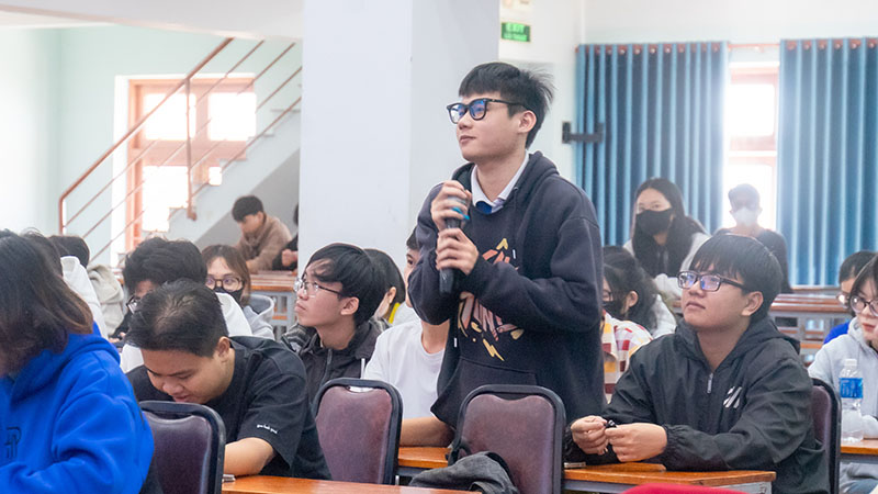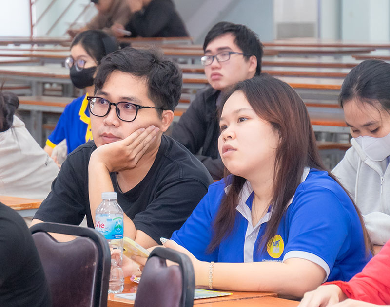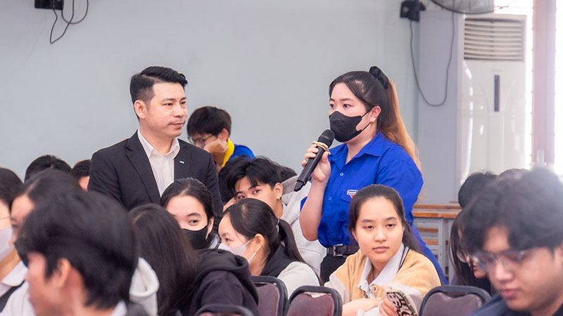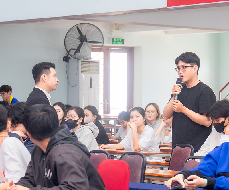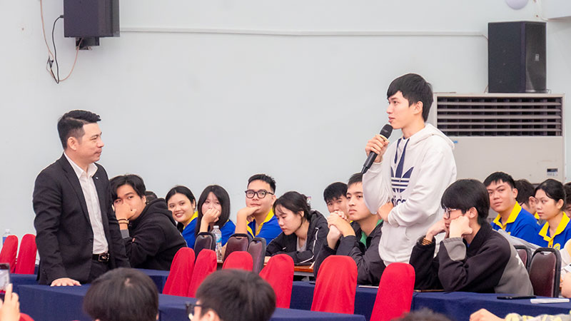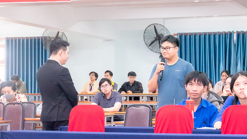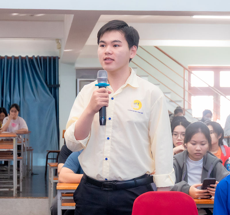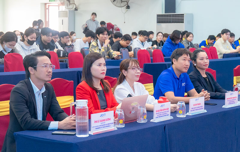 Phần hấp dẫn cuối chương trình là talkshow đặc sắc do JCI Bình Thuận tổ chức dành riêng cho sinh viên Trường Đại học Phan Thiết. Tại buổi trò chuyện, Ông Trần Ánh Nhật Hưởng – Chủ tịch JCI Bình Thuận 2026 với kinh nghiệm dồi dào trong lĩnh vực đào tạo, quản lý và khởi nghiệp, đã chia sẻ những góc nhìn thiết thực và gần gũi về chủ đề “Hành trang khởi nghiệp – Từ ý tưởng đến thực thi”. Những chia sẻ của Ông Trần Ánh Nhật Hưởng không chỉ giúp sinh viên UPT hiểu rõ hơn về quy trình khởi nghiệp mà còn trang bị cho các em những kỹ năng cần thiết để biến ý tưởng thành hiện thực, đồng thời khuyến khích các em tự tin bước ra khỏi vùng an toàn và dám thử thách bản thân trong hành trình khởi nghiệp.