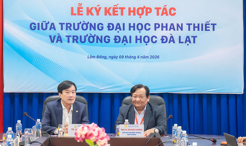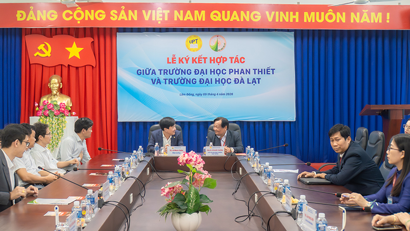 Chiều ngày 09/4/2026, tại Trường Đại học Phan Thiết đã diễn ra Lễ ký kết Thỏa thuận Hợp tác giữa Trường Đại học Phan Thiết và Trường Đại học Đà Lạt. Sự kiện đánh dấu một cột mốc mới trong mối quan hệ giữa hai trường, thể hiện tinh thần hợp tác, chia sẻ tri thức, cùng phát triển trong bối cảnh giáo dục đại học trong nước và thế giới đang không ngừng đổi mới.