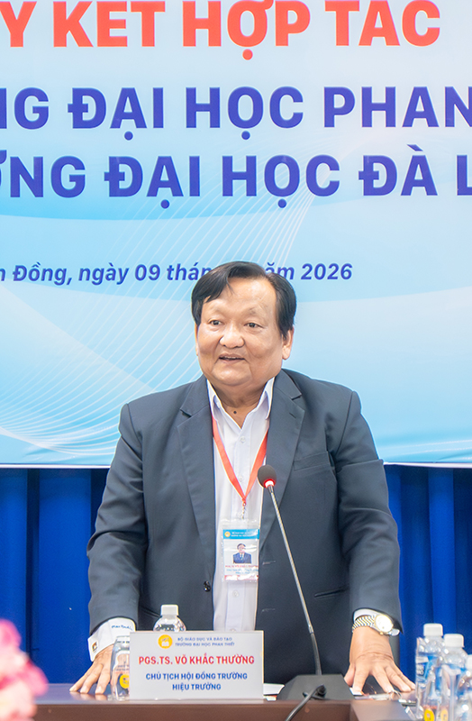 Phát biểu tại Lễ ký kết, PGS,TS. Võ Khắc Thường – Chủ tịch Hội đồng trường, Hiệu trưởng Trường Đại học Phan Thiết cho biết: trong bối cảnh toàn cầu hóa và cuộc cách mạng công nghiệp lần thứ tư diễn ra sâu rộng, các cơ sở giáo dục đại học ngày nay không chỉ thực hiện chức năng đào tạo mà còn đóng vai trò là trung tâm đổi mới sáng tạo, nghiên cứu khoa học, chuyển giao tri thức phục vụ cộng đồng. Chính vì vậy, việc tăng cường liên kết, mở rộng mạng lưới hợp tác với các trường đại học, viện nghiên cứu uy tín trong và ngoài nước có ý nghĩa đặc biệt quan trọng. Qua đó, thúc đẩy tạo dựng môi trường học thuật năng động, giúp đội ngũ cán bộ, giảng viên, sinh viên có cơ hội tiếp cận tri thức mới, mở rộng tầm nhìn, nâng cao năng lực chuyên môn.