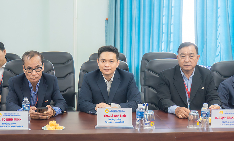Về phía Trường Đại học Phan Thiết có sự hiện diện của PGS,TS. Võ Khắc Thường – Chủ tịch Hội đồng trường, Hiệu trưởng; PGS,TS. Đinh Phi Hổ – Bí thư Đảng ủy, Phó Hiệu trưởng; TS. Võ Khắc Trường Thanh – Ủy viên Hội đồng trường, Phó Hiệu trưởng; TS. Trần Tình – Trưởng Phòng Quản lý Khoa học và Hợp tác Quốc tế, cùng đại diện lãnh đạo các phòng chuyên môn của trường.