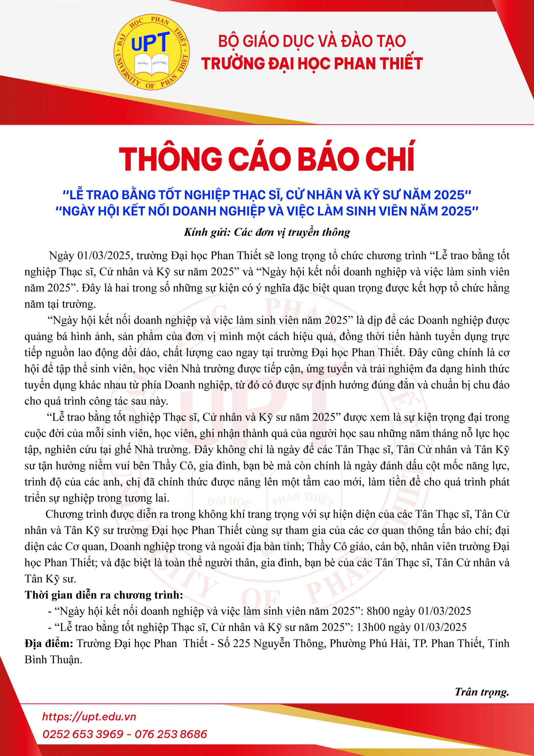 Tham dự Lễ ký kết lần này, đại diện trường Đại học Phan Thiết có sự góp mặt của PGS.TS.NGƯT. Võ Khắc Thường – Chủ tịch Hội đồng Quản trị – Hiệu trưởng Nhà trường, ThS. Võ Khắc Trường Thi – Trưởng Phòng Quản lý Đào tạo, ThS. Nguyễn Như Trường – Phó Trưởng Phòng Công tác chính trị sinh viên – Quan hệ Doanh nghiệp – Hỗ trợ việc làm sinh viên, đại diện các đơn vị Phòng/Ban, cùng một số sinh viên thuộc các Khoa chuyên môn trong Nhà trường.
