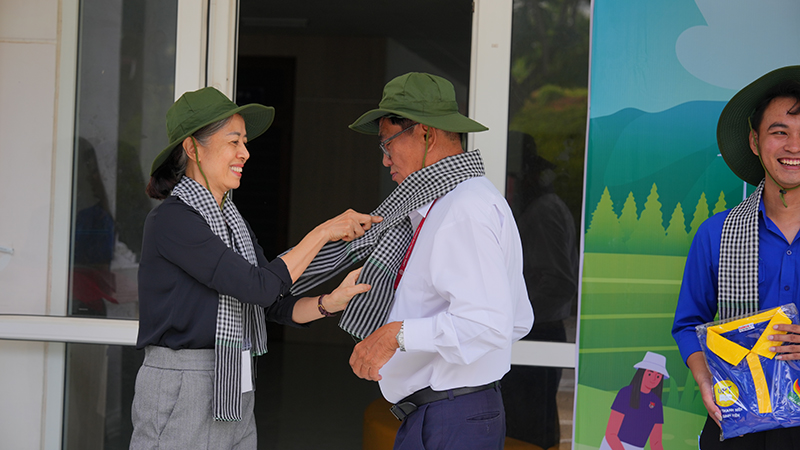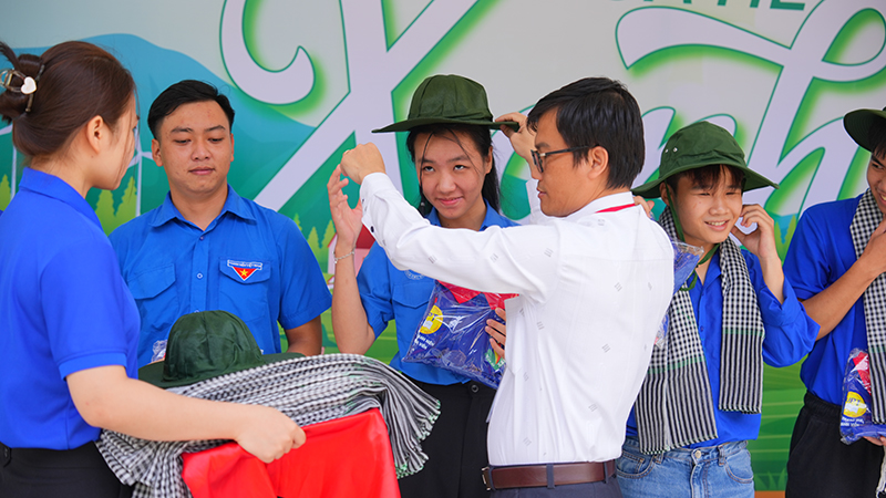 Áo xanh tình nguyện, mũ tai bèo, khăn rằn đươc trao đến tay các tình nguyện viên