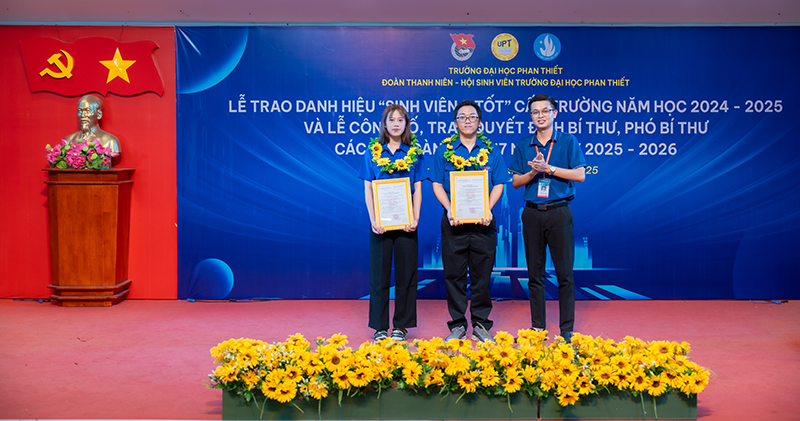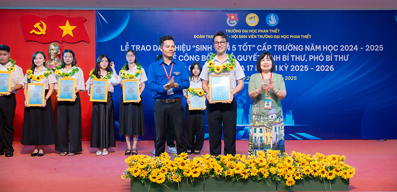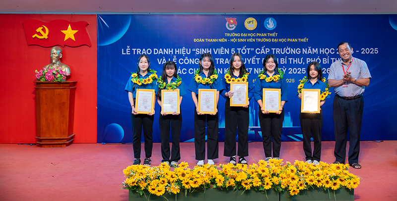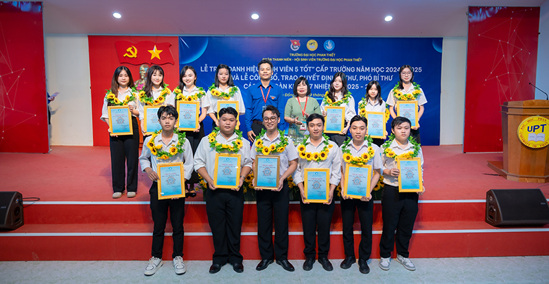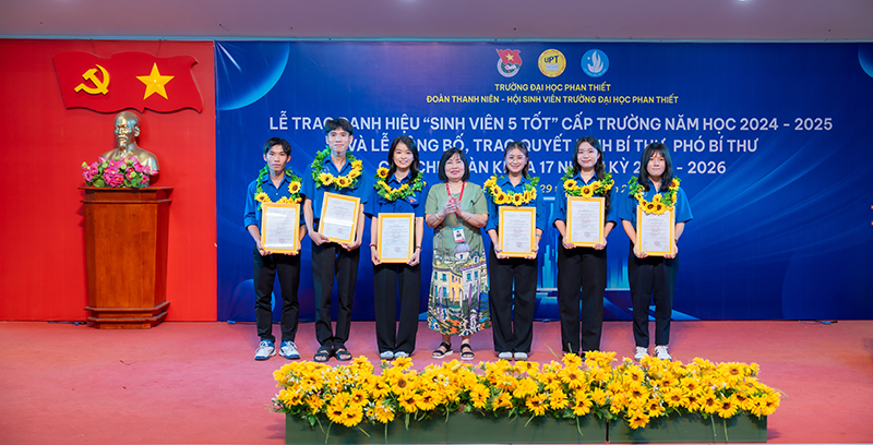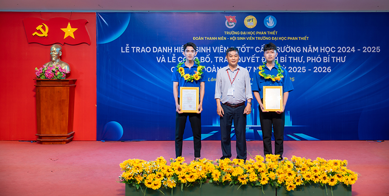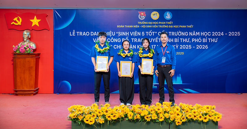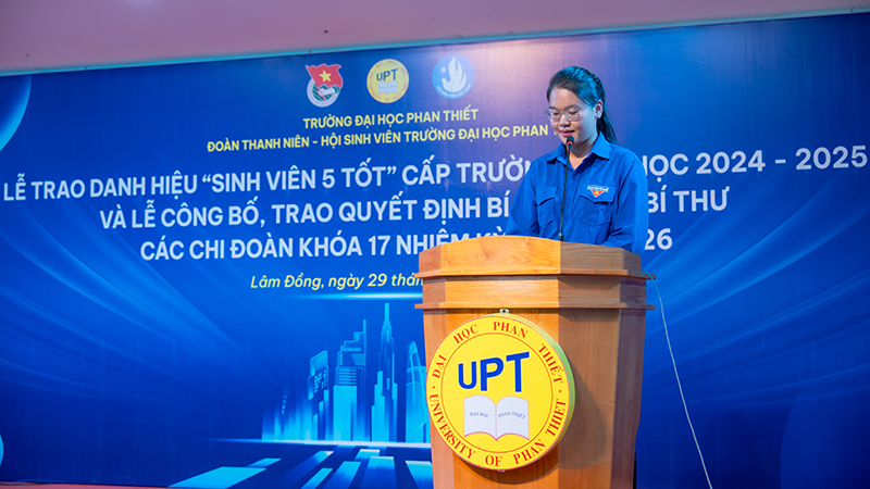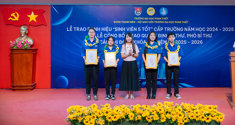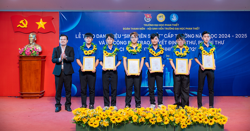 🎓 Chiều ngày 29/10/2025, tại Hội trường Lầu 3, Trường Đại học Phan Thiết (UPT) đã long trọng tổ chức Lễ trao danh hiệu “Sinh viên 5 tốt” cấp Trường năm học 2024–2025 và Lễ công bố, trao quyết định Bí thư, Phó Bí thư các Chi đoàn Khóa 17 nhiệm kỳ 2025–2026.